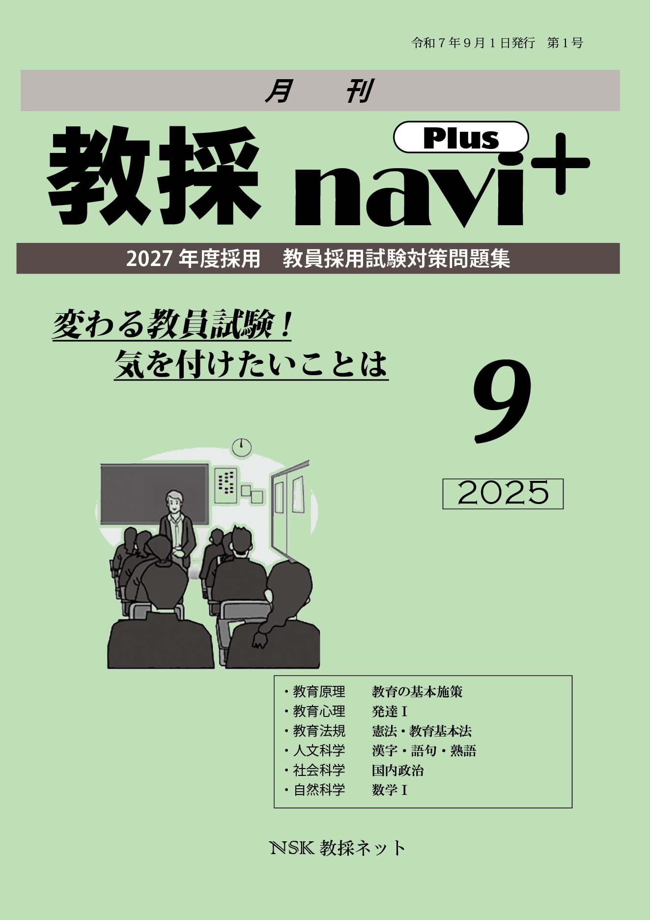 体裁 〔通常版〕A4判 本文32ページ 収録問題数 〔教職〕約30〜40問 購読料 〔通常版〕720円(税込)+送料180円 発行期間 2025年9月1日(9月号)〜26年6月1日(6月号) 毎月1日発行 専門教養問題集は『別冊「教採ナビ」』を発行します ■別冊「教採ナビ」申込みへ■ 〔参考〕◆今年のトピック 含・予告◆